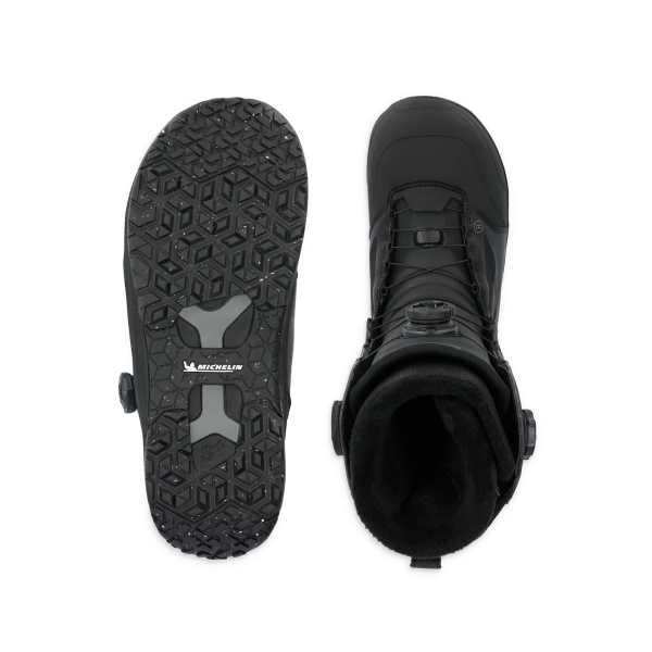 Podeszwa z unikalnym krzyżowym zewnętrznym trzonem TPU dla lepszej stabilności. Wytrzymałe mieszanki gumy WIC i OC wraz z bieżnikiem zaprojektowanym przez Michelin zapewniają optymalną przyczepność na śniegu i lodzie. Podeszwa środkowa +SLIME gwarantuje responsywną amortyzację, a geometryczny wzór wgłębienia pod stopą poprawia wyczucie deski.