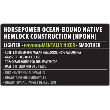 Dzięki zastosowaniu Ocean-bound PBT – materiału z recyklingu PET pozyskanego w obszarach nadmorskich, oraz naturalnego drewna Makah Hemlock, deska nie tylko świetnie jeździ, ale także przyczynia się do ochrony środowiska.