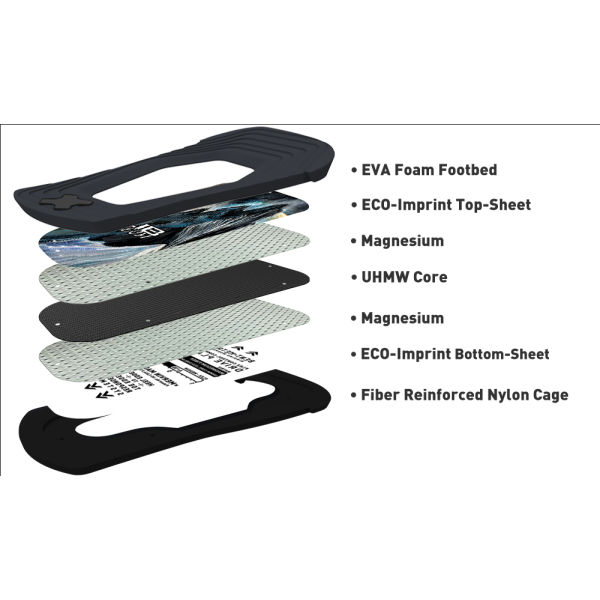 Model Transfer wyposażony jest w średnio sztywną wkładkę Magnesium Fiber Drive Plate, w której zastosowano stop magnezu, aby zmniejszyć wagę wiązań, a równocześnie zwiększyć ich wytrzymałość. Dodatkowo, cała wkładka pod butem jest pokryta warstwą materiału tłumiącego EVA, co zapewnia optymalny komfort i wsparcie w trakcie jazdy.
