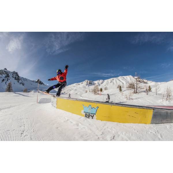 Średniozaawansowane elementy freestylu: – skok 180 fs/bs na stoku i w czasie jazdy – noseroll/ tailroll – skok z grabem na skoczni – skok shifty na skoczni – 50/50 – bs boardslide – nosepress/tailpress na boxie